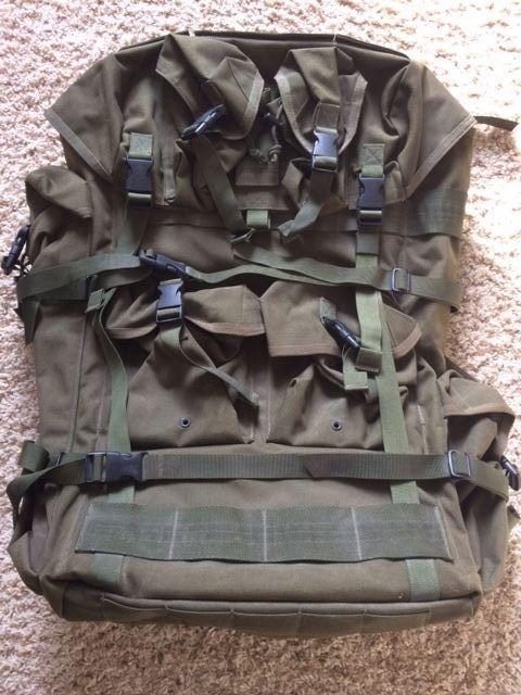 Blackhawks 1000D NyTaneon material -Top cinch tabs to keep top of pack close to body -Padded waist (removable and adjustable up and down) -Radio antenna routing openings in top and internal cinch compartment -HydraStorm Hydration System compatible -Utilizes a large button hole with elastic protective cover instead of grommet -Five internal cinching compartments -Large/long side pouch for antennas -Six external pouches -Two lash straps points on bottom for compression stuff sacks/sleepbags, etc -BTS webbing for additional pouch attachment on upper portion of pack but under lid -BTS web on top of lid -Top loading lid -Flip up top compartment for "reach & turning" of radio frequency and button access -2 bottom drain buttonholes -Main compartment Dim: 23 x 7 x 14 -Wt: 7 lbs 8 oz. Cubes: 3500 Outer Pouches (5): 8 x 6 x 3 Cubes: 432 Side Pouch (1) Dim: 19 x 5.5 x 2.5 Cubes: 261 Backpack, Pack, Bag, Ruck, Rucksack, Mountain Ruck, Tactical, Army, Navy, Airforce, Marines, Military